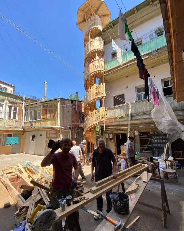 Проект по спасению лестницы организовал молодой архитектор из США Томас Ибрагим, который несколько лет назад снял квартиру в этом дворе. В Тбилиси в 2019 году он приехал изучать позднесоветскую архитектуру.