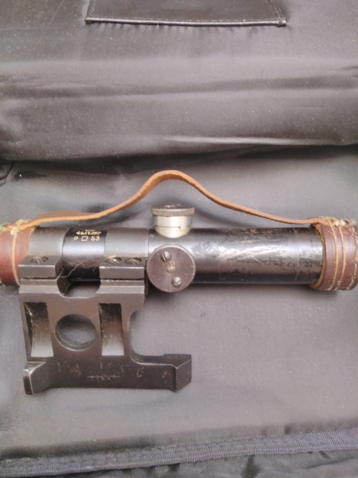 С ней шел классический прицел ПУ 3.5 на 20. К сожалению, нерабочий. С его починкой была отдельная эпопея, с пересылом его в Питер.