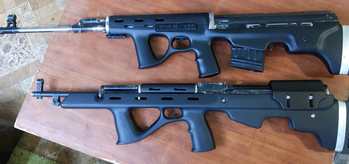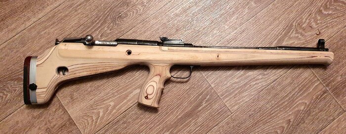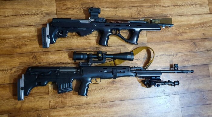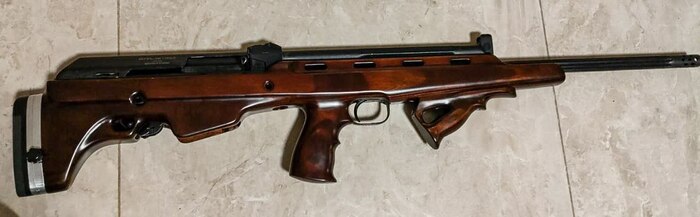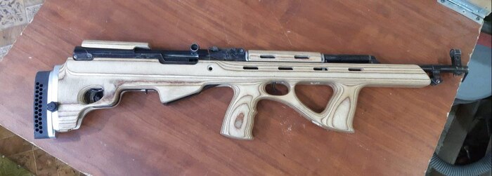 Длина карабина составила 810 мм, что с лихвой входит параметры закона об оружии, а перенос спуска, тягой, без изменений и доработки основных узлов УСМ, позволило остаться в рамках закона. По итогу получилось ложе, которое ставится на штатные места и позволяет без доработки превратить СКС в Буллпап.