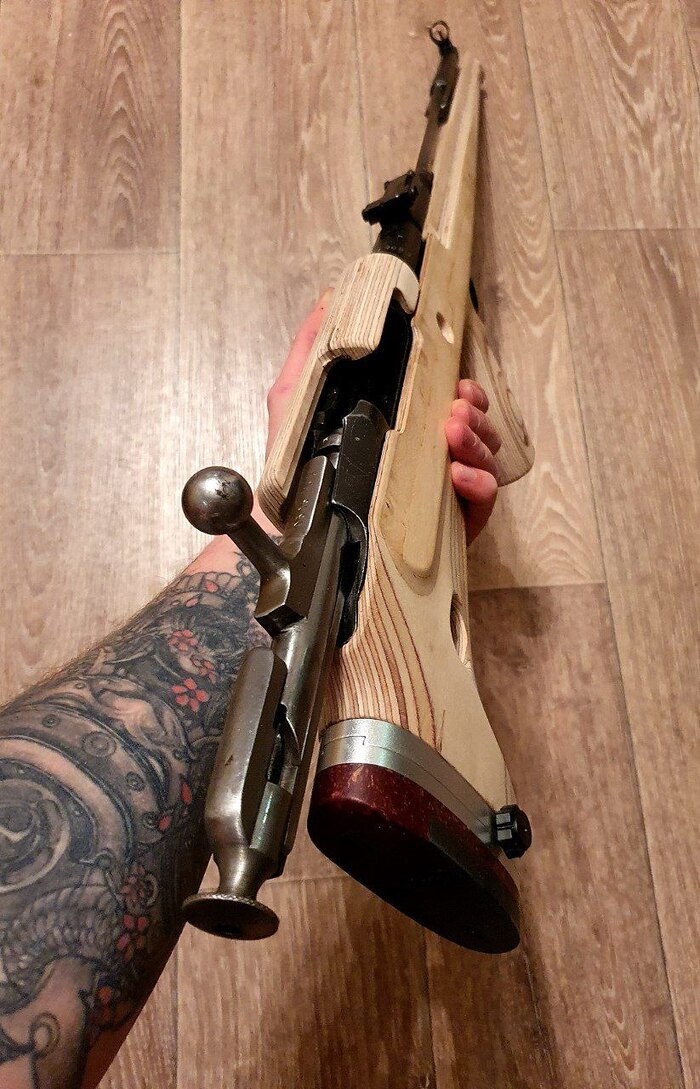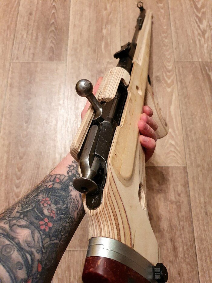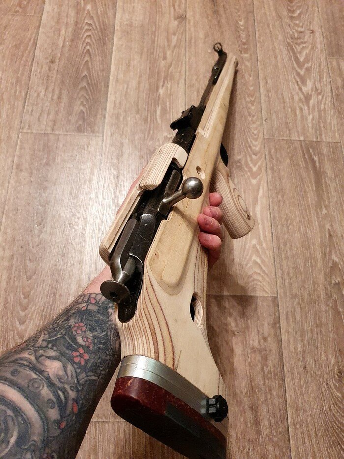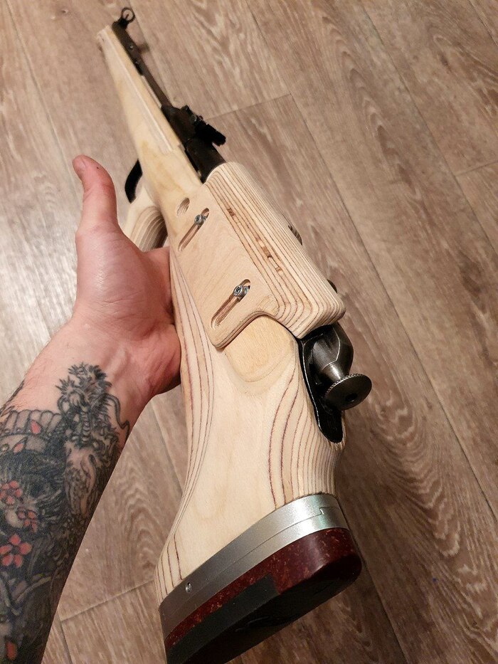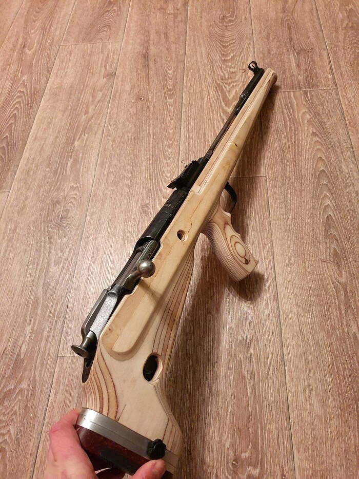 Ну и на сегодняшний день крайним моим изделием стала Мосинка, по удобству не могу ничего сказать, так как Мосинка это болтовик, а не полуавтомат как ранее переделанные варианты, но спрос на нее велик, поэтому ложе Буллпап Мосинка родилось