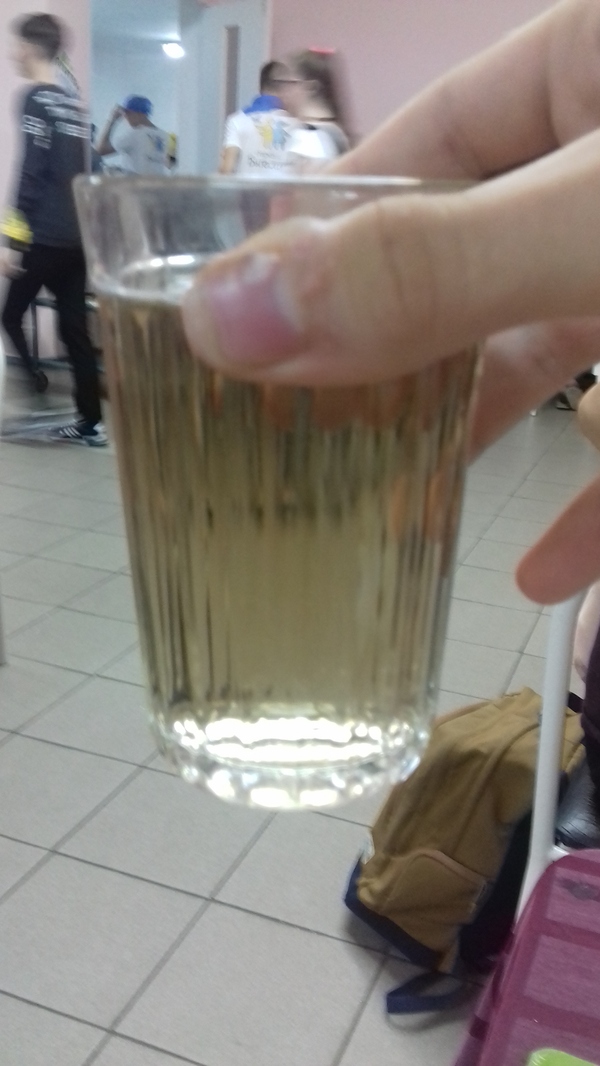 И так на всех столах. Нет, это не компот, не кисель и не что-либо иное, это самый настоящий ЧАЙ. Так сказано во всей номенклатуре. Да-да, ЧАЙ. На вкус - едва подсахаренная вода. Стоит сделать ремарку и сказать, что тема еды в столовой не поднимается ни на каких планёрках и прочих оф. мероприятиях, ибо "все и так всё знают". Часто дают недо- или же переваренные макароны, пересоленые порции и прочее. Молчу про размер порций, коих отчаянно не хватало старшим отрядом, хотя в последнее время в этом плане полегче. Именно после лагеря не понимаю тех, кто говорит, что в школьных столовых плохо кормят. В прочем, сейчас не об этом. Решив, что хватит это терпеть, я хватаю стакан и иду на стойку, устраивать разбор полётов. Почти сразу завязался спор с персоналом, дескать: "Псина, куда ты лезешь?", однако администрацию они всё же вызвали. Пока ждал, продолжалась вялая перепалка. Главный Повар пришла довольно быстро, разговор прошёл адекватно, пообещала всё заменить (хоть и видно было, как я её бешу). Сел, жду. Дважды подходил к персоналу, уточняя, когда, блэт, принесут чай. Принесли неплохой для местных реалий чай, немного слаще и темнее на пару оттенков. Нормально.