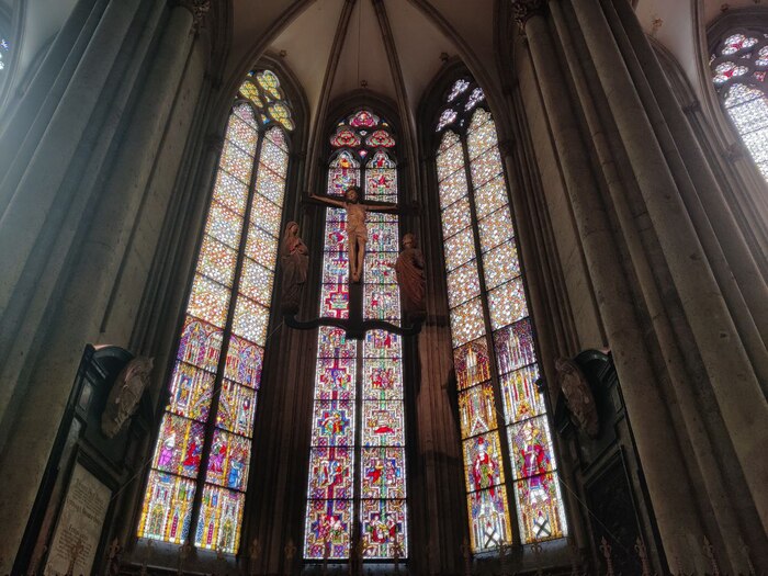· Витражные окна: Потрясающие витрари, созданные в разные эпохи, включая современное окно от немецкого художника Герхарда Рихтера.