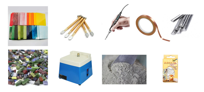Сборка и пайка (для витража, берем паяльник и медную ленту, также понадобиться олово) или выкладка на основу (для мозаики, нужен холст-основа и немного цемента, затирка)