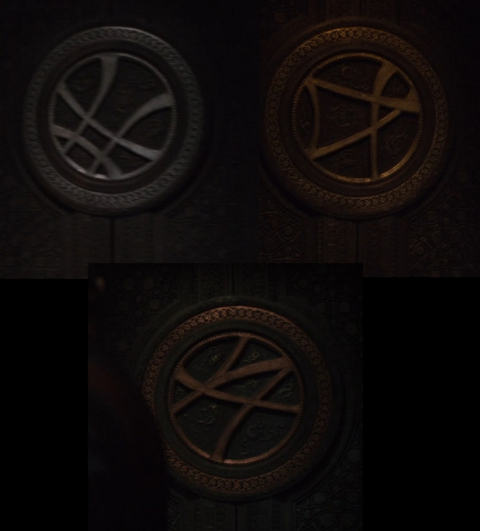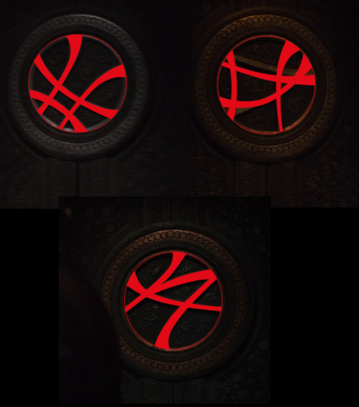 Было решено использовать элемент решетки в качестве "переплета". Сначал хотел сделать три одинаковых, но потом решил немного помучиться. Пересмотрел фильм, наделал скриншотов (нигде более я этих изображений (как и их названий) найти не смог) векторизовал, творчески доработал стиль (2 оставшиеся марвел сделал по принципу "шоб шо-то було") и преобразовал в 3D.