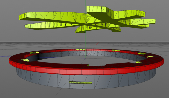 Еще совсем немного моделинга (дня 4, пустяки) и получился концепт такой вот вставки.