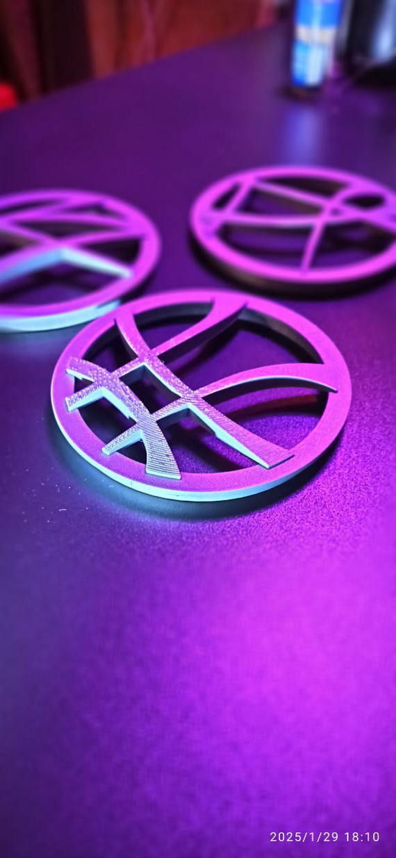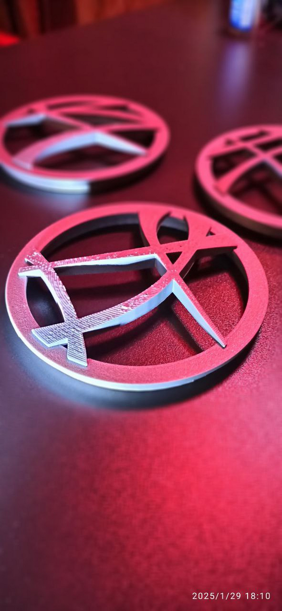 Так как верх значкак представляет собой сегмент сферы, напечатать её без дырок не удалось даже с четвертого раза (между печатями вносил в настройки слайсера дополнения)