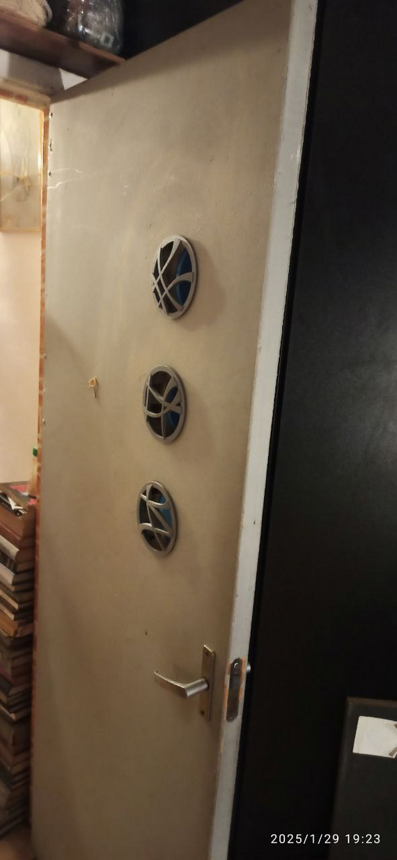 Всё таки перед установкой надо дверь хотя бы оклеить... чем-нибудь стильным... Опять поиски, сомненья, пробы. Если этот пост наберет... А пофиг сколько он там чего. Будет настроение - опубликую результат. И - да. Двери 40+ лет. СССР, картон, внутри бумажные соты. Выкинуть её давно надо...