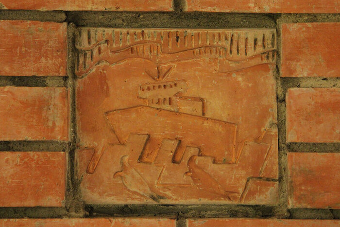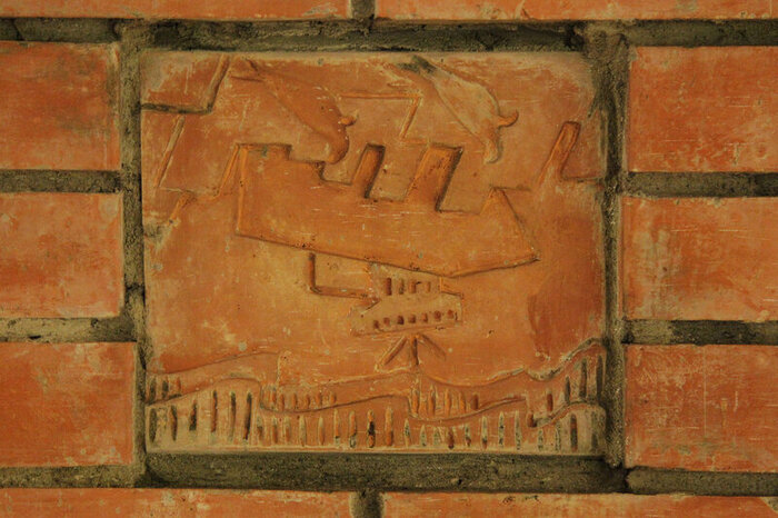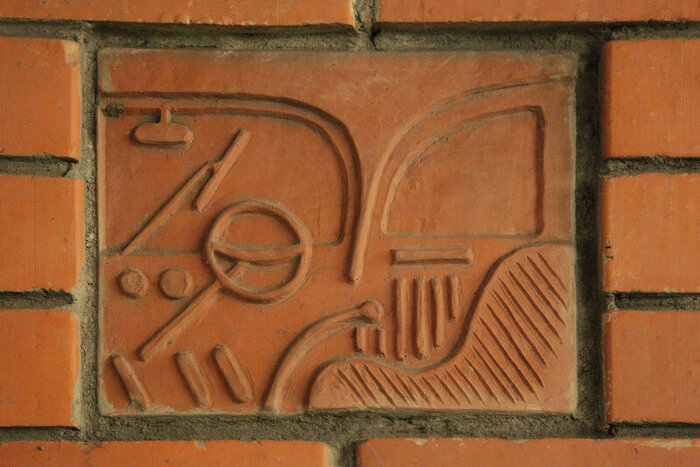Пилоны станции украшают небольшие изразцы с рельефными изображениями всякого разного. Космонавты, виды из кабины грузовика, звезды и т.д.