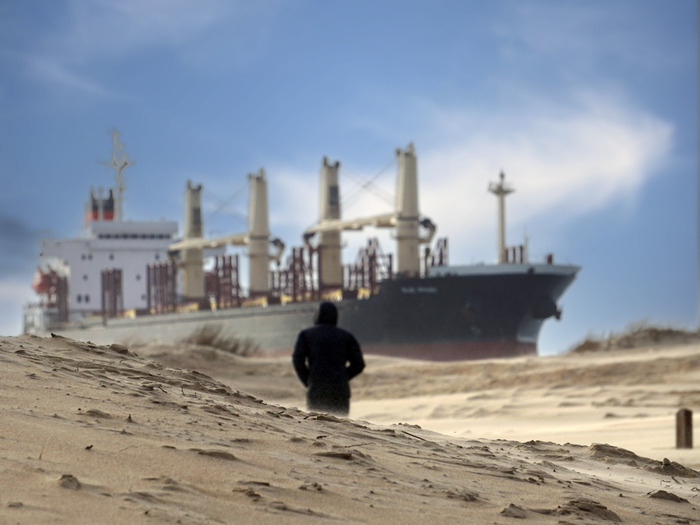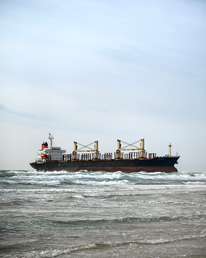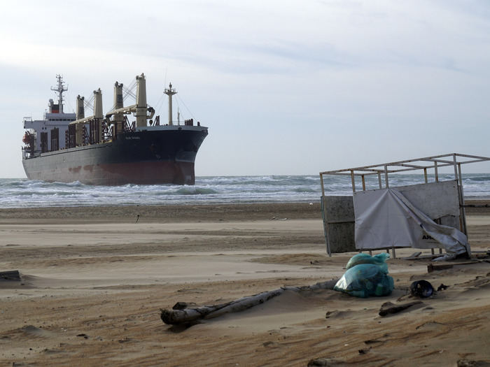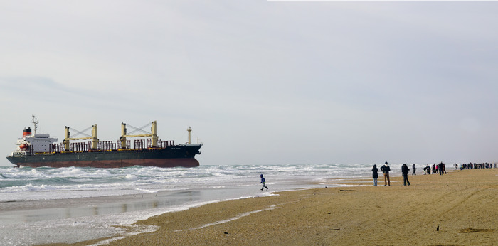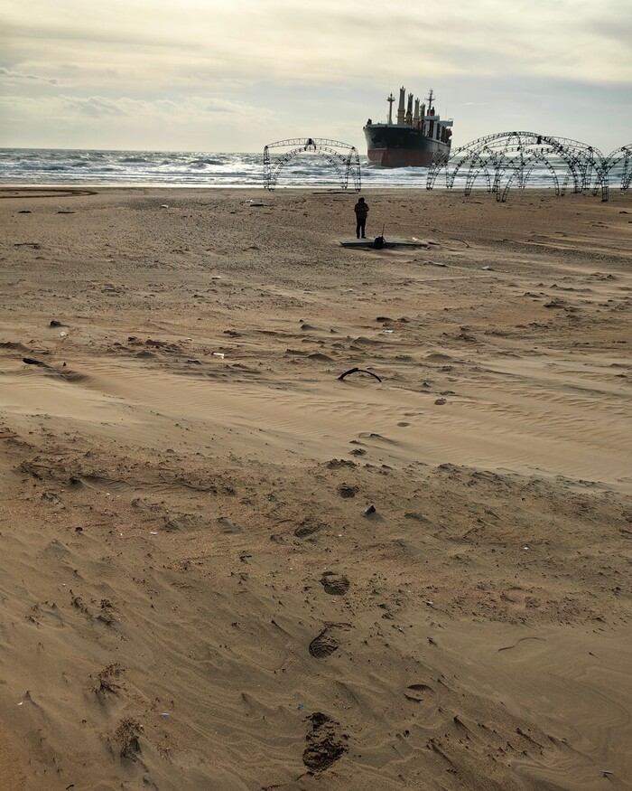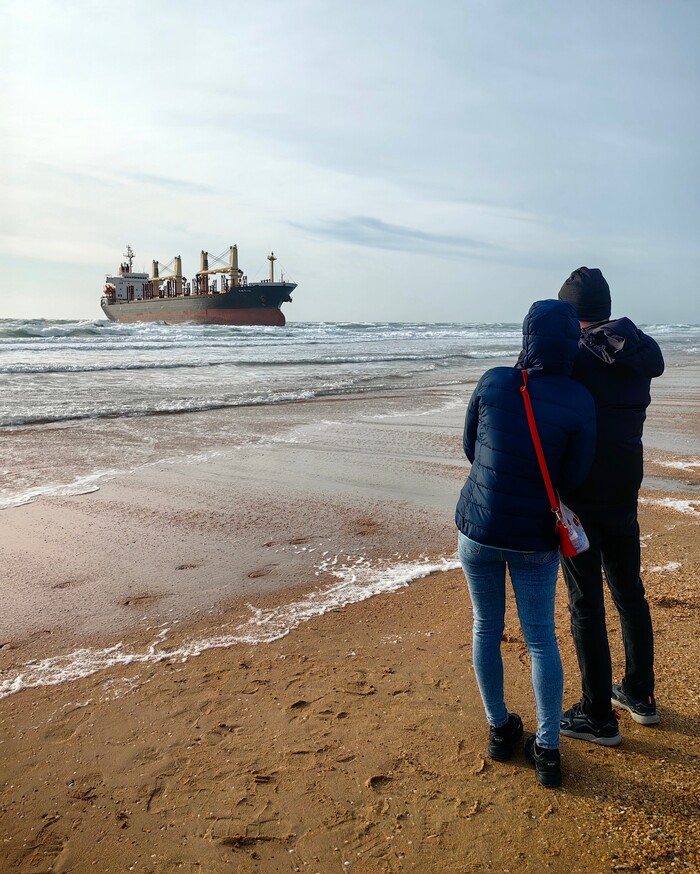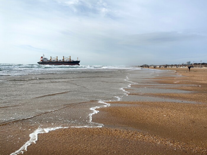 Шторм в Витязево выбросил на берег сухогруз Blue Shark