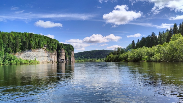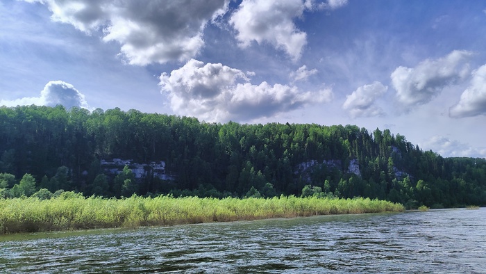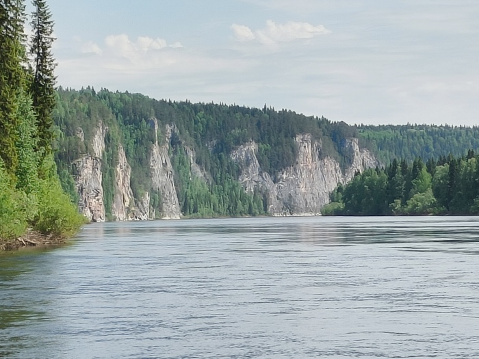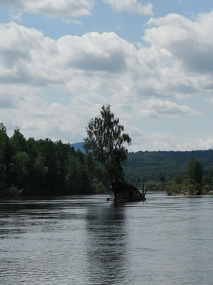 Впереди у нас был насыщенный день. Мы хотели к его концу успеть доплыть до камня с названием Писаный и встать на стоянку около него, а на утро следующего дня подняться на его вершину, поэтому выдвинулись мы в этот раз пораньше. Стали все чаще попадаться признаки человеческого присутствия. Сначала мы проплыли железный мост, возле которого делали привал на Камазе в первый день и по которому пересекали реку. Попробовали половить за опорами моста на обратном течении, но рыба продолжала упорно молчать. Погода продолжала нас радовать, мы загорали под солнцем, особо горячие головы периодически купались в реке.