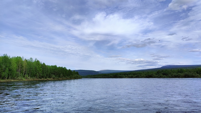 Мы же, опечаленные тем, что гора нас не приняла, ибо идти на подъем и последующий спуск по мокрым камням и глине было близко к самоубийству, отправились на другой берег реки в поисках стоянки. Посещение Ветлана мы оставили на следующий раз, так как сюда идет дорога от Красновишерска, по которой можно добраться на машине. До конца маршрута нам оставалось около 5 километров, но мы хотели встать на ночь напротив Ветлана, проделать этот путь с утра и сходить на гору Полюд, а затем уже отправиться домой.