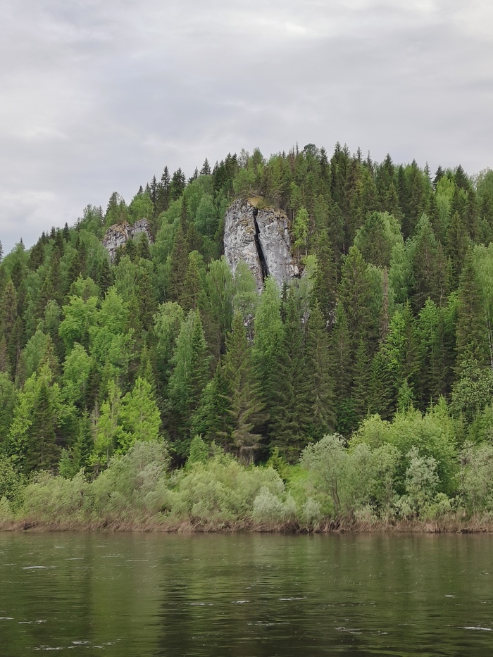 Встав часов в 6 утра, мы с рыбаком Женей отправились по тропинке к подножию камня, чтобы обловить прекрасный глубокий омут под ним. Места были очень перспективные, по дороге мы даже заметили гуляющую на течении рыбу, судя по всплескам вполне себе приличных размеров. Но атаковать наши приманки она не пожелала и мы, не солоно хлебавши, вернулись в лагерь. По той же тропе дядя Женя, Светлана и я с женой и дочерью отправились покорять высоты камня. Путь наверх был примерно таким же, как и на камне у поселка Вая, немного менее крутым и за счет этого чуть длиннее. По дороге попадались вывороченные с корнем большие деревья, кроме того мы нашли несколько подберезовиков.