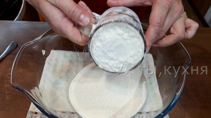 Важно, чтобы при раскатке тесто не прилипло к столу, поэтому немного муки всегда держу рядом. Отступаю от края 4-5 см. и просыпаю дорожку из манки... чтобы начинка на вытекала и пирог получился сочным.