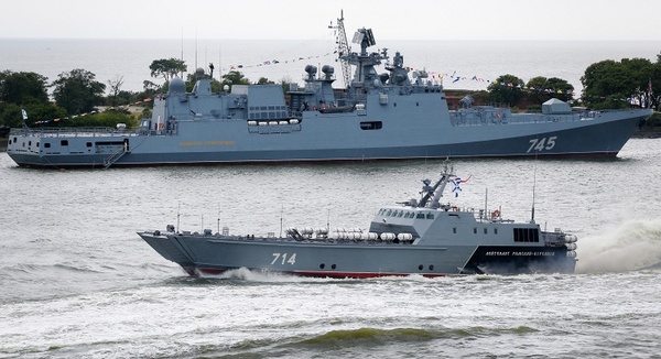 Фрегат проекта 11356 "Адмирал Григорович" (на втором плане)