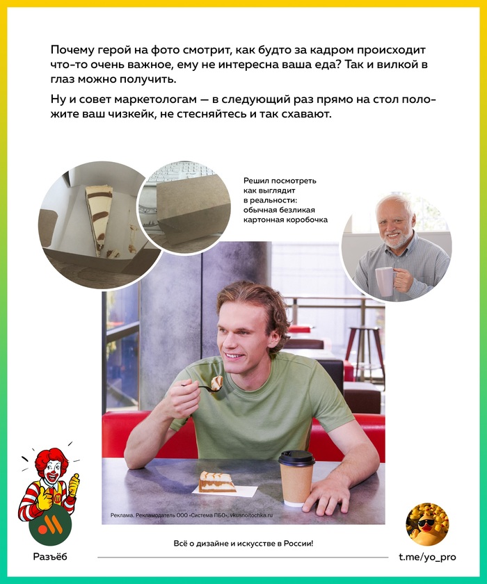 Дизайнеры, когда фотошопите, обращайте внимание на подобные детали. Суперкартинка должна выглядеть, как настоящее фото. Тени, ракурс, свет — все это важно для создания реалистичного макета. Как видите, даже в больших компаниях, в которых должен трудиться отдел маркетинга с нескольким десятков человек — могут делать говно.