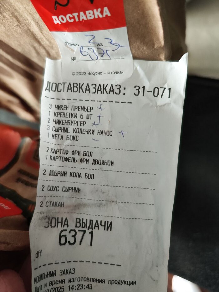 Собрались с друзьями поиграть в настолки, и конечно же решили, что на голодный желудок это никак не сделать, а потому было принято решение заказать доставку из какого-нибудь быстропита. Взгляд упал на Вкусно и точка (тем более там была акция со стакашками) и понабрав различного всякого, сделали заказ.
