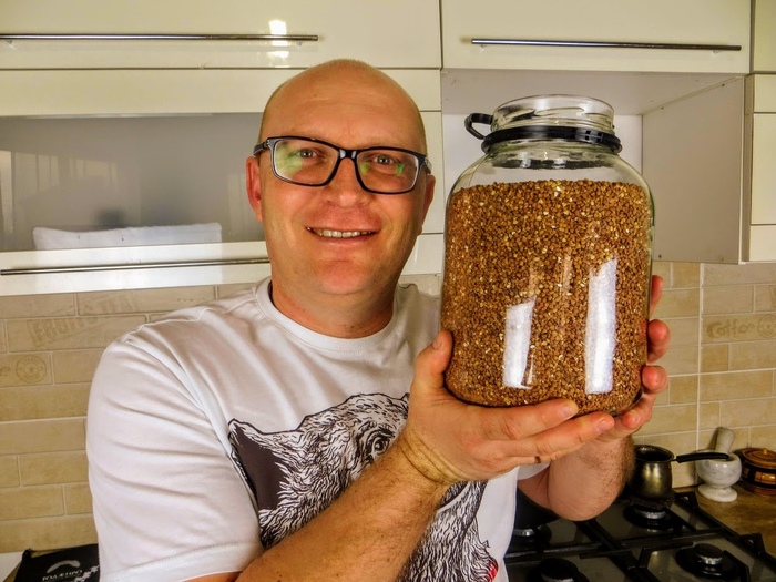 Что ж, в качестве гарнира я использовал полстакана оставшейся гречки. Тут всё просто: варим кашу по своему вкусу. Мне больше нравится рассыпчатый вариант. Вуаля! Блюдо готово.