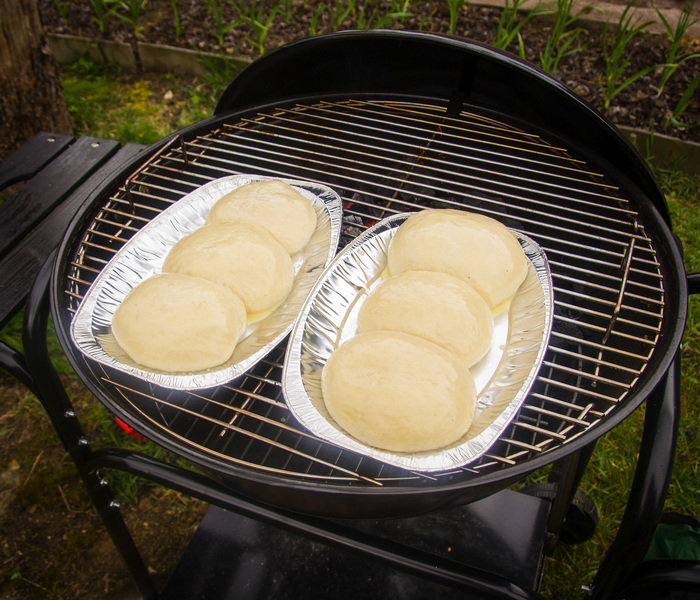 1) Если захотели экспериментов, или в сельпо не продавались булки для бургеров, давайте сделаем свои. Я замешал тесто для своих обычных булок и пока булки стояли на второй расстойке разогрел гриль до 200 градусов, выложив уголь в гриль по соотношению 20 на 80, т.е. 80 процентов гриля пустые, 20 процентов - раскаленный уголь.