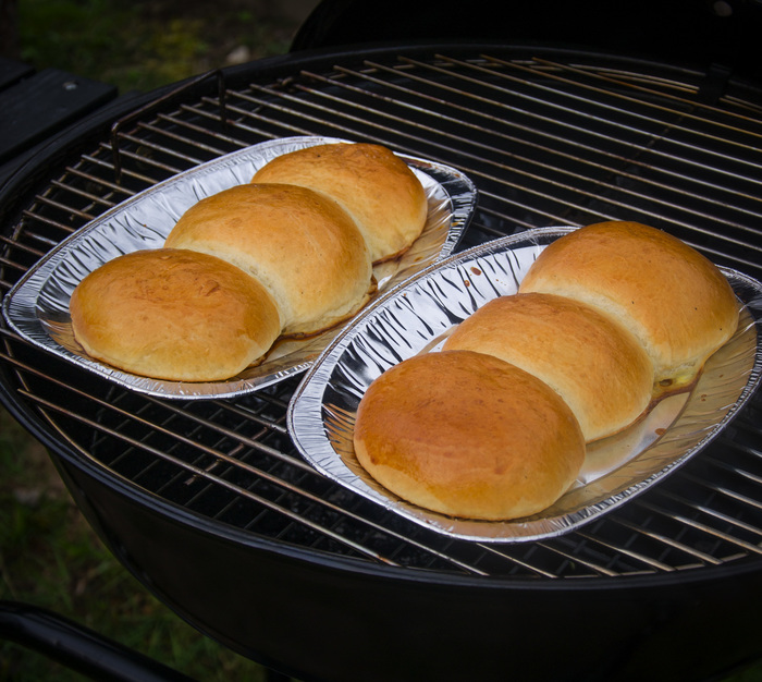 Поставил булки в гриль, закрыл все задвижки наполовину и через полчаса вытащил вон таких румяных красавчиков. Скорее всего важное уточнение, выхлоп на верхней части гриля у меня был ровно с другой стороны углей.