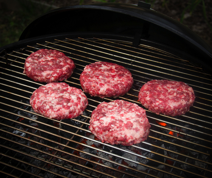 4) Соус сняли, перемешали и отправили остывать, засыпаем угля в гриль, по пропорции 70 на 30, оставляем открытым гриль, чтобы угли все занялись. А пока сформируем котлеты, мне мясник накрутил фарша из гуляша и получилось сочни, свежи, жырни. Котлеты отправляем на прямой жар и жарим с каждой стороны по паре минут, главное крышку закрывайте, а то пламя будет как у Сталика читающего плохие комментарии :) И это пламя нельзя заливать водой, получите фаербол в табло.