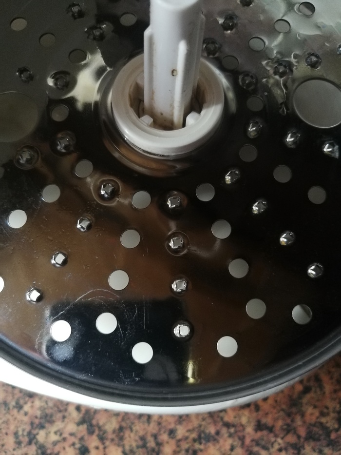 Воду сливаем без фанатизма, отжимать массу не надо.. Просто держу рукой тесто и через щелку сливаю воду.