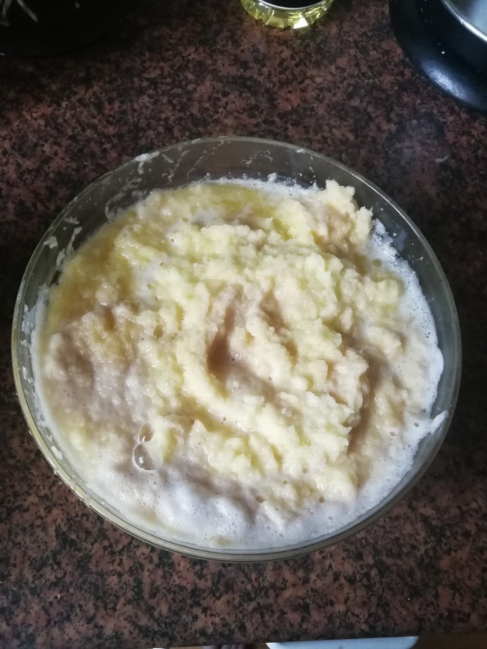 2. Картофель и репчатый лук измельчить в блендере (можно натереть на мелкой терке).