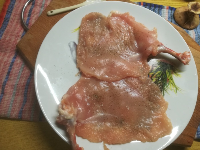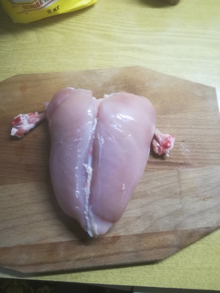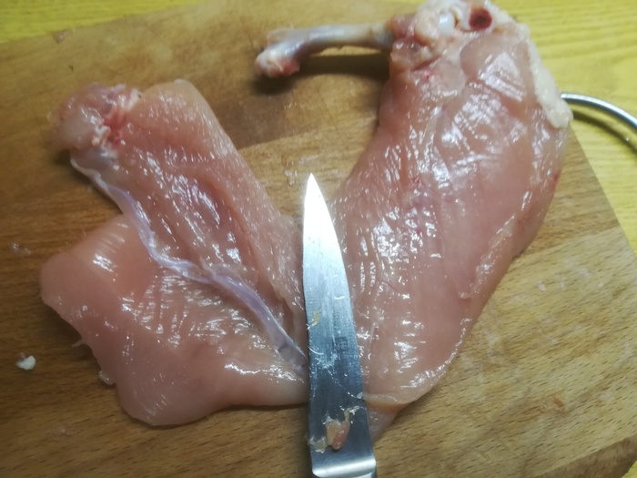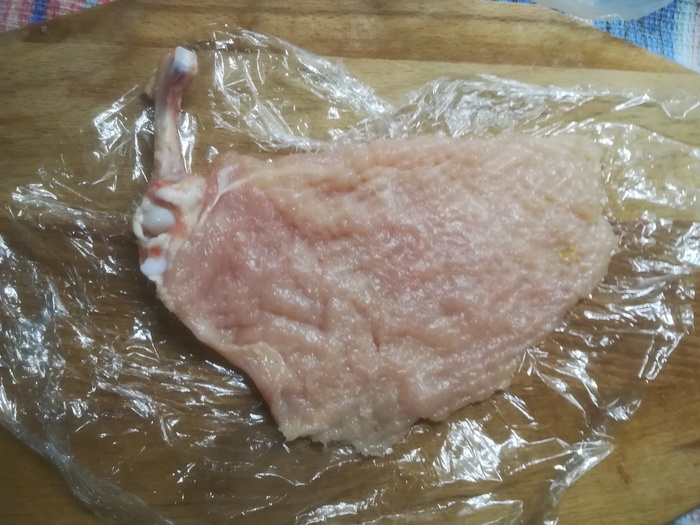 С внутренней стороны аккуратно отрезаем так называемое малое филе, а затем все тщательно отбиваем, главное не увлечься, чтобы просто не размозжить филе, и оно не развалилось, как это например у меня получилось с малым.