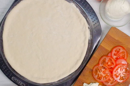 10. Выложить пиццу на то, на чем вы планируете ее печь. Идеально подойдут камень для пиццы, чугунная сковорода, а также специальная форма с отверстиями. Если таких девайсов нет, то можно воспользоваться обычным противнем.