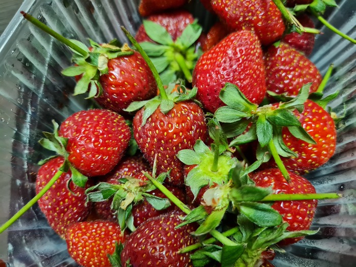 - Клубника — 500 г (свежая, 250 г в сметанный слой и 250 г в верхний слой)