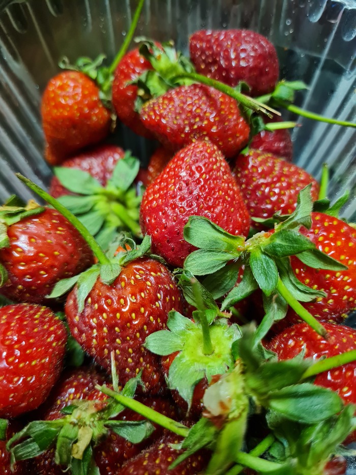 16. Оставшуюся клубнику очистите, помойте водой и нарежьте тонкими лепестками.
