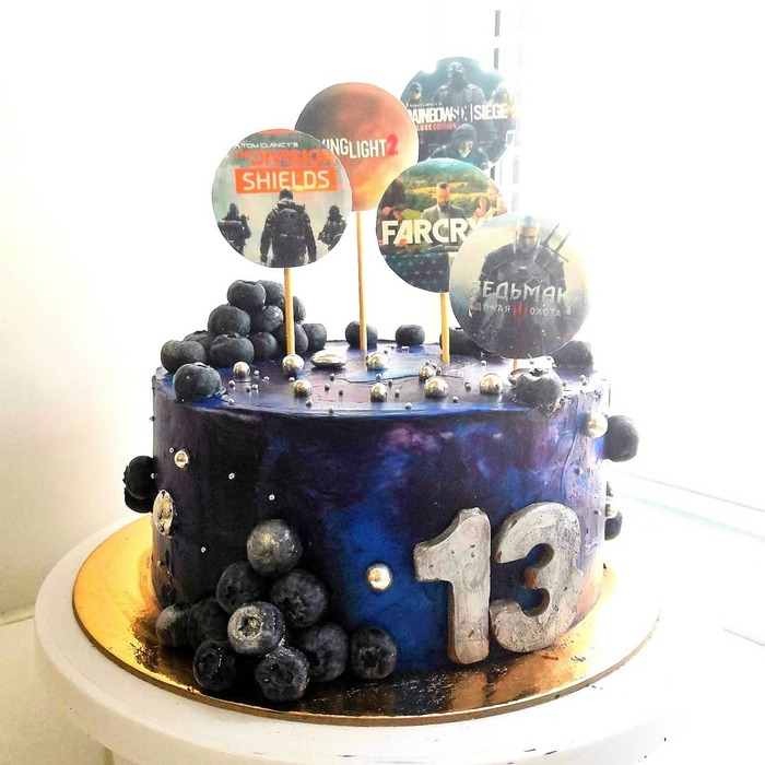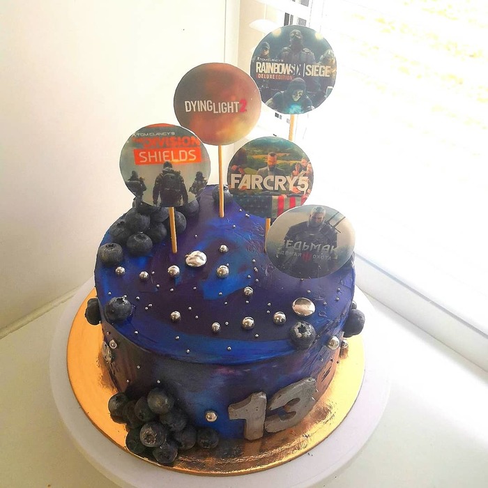 Попросили сделать торт для мальчишки на 13 лет, главное увлечение которого компьютерные игры. Гамму обозначили именно такой, сразу дам пояснение, цветной слой очень тонкий, основной весь крем белый.