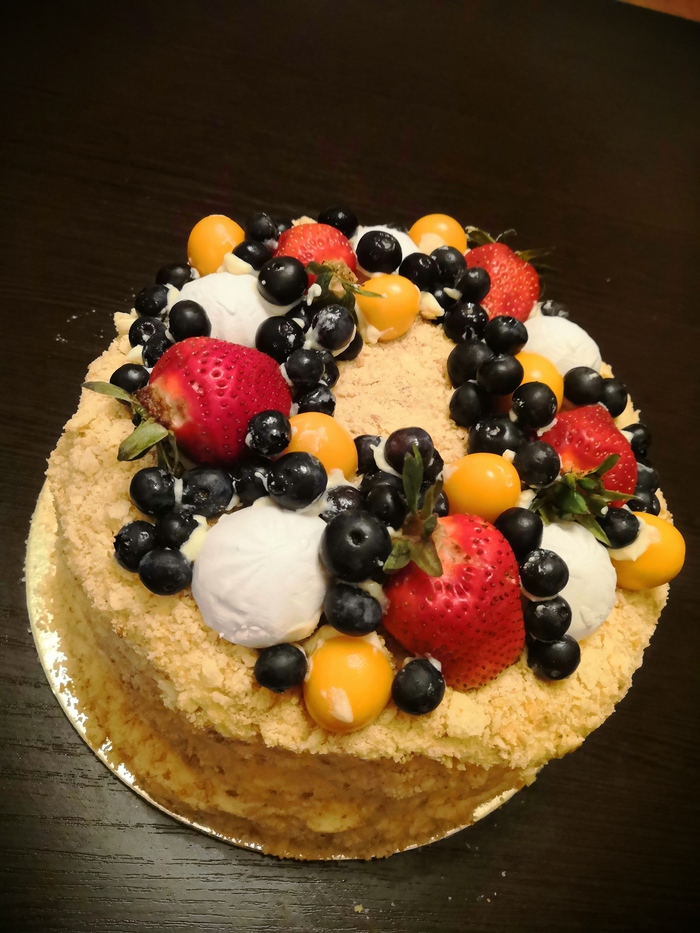 Мой батя обожает торт "Наполеон". И батя подруги обожает "Наполеон". Так вот, на заказ торты не делаю, но когда друзья и знакомые просят сделать-делаю. Невероятно близкий мне человек попросил на День рождения своего папы намутить тортик. Начала перечислять, что могу и он услышал кодовое слово "Наполеон"))). И вот, продукты куплены, впереди ночь и я начала готовить. 13 коржей, заварной ванильный крем, крошка по всей кухне и всему коридору.... Собираю торт, вырубают свет... Я громко матерюсь, ищу телефон, врубаю фонарик и продолжаю самоотверженно ваять. На середине декора свет дали. Получился такой вот тортик, заказчик внешностью доволен, про вкус узнаем позже...