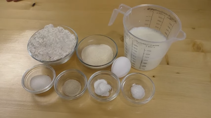 В кастрюлю вливаем молоко, разбиваем яйцо (бьем отдельно, мало ли тухлое)), масло, сахар, соль, размешиваем.