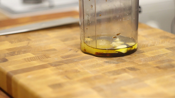 1. Перебить в блендере : чеснок, соевый соус, бальзамический уксус, мёд, оливковое масло, сок лайма, арахисовую пасту, соль и кориандр