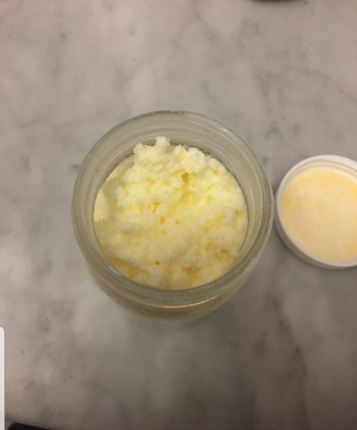 О, нормально, но это сметана, а нам же нужно масло. Закрываем банку и наяриваем дальше. У кого сколько будет сил, иначе масла вам не попробовать "финского". Пока можно поесть что-нибудь, силы-то нужно откуда-то брать, теребим же эту херню уже часа три.