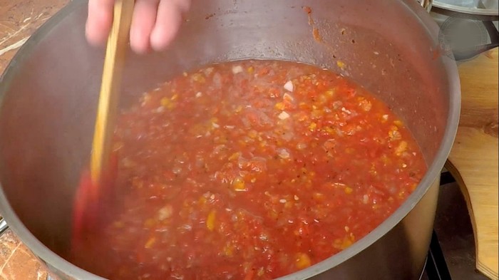 Следующий этап – крем начнет густеть. При постоянном размешивании дожидаемся первых «бульков» в креме. Можно выключать нагрев. Для быстрого охлаждения крема перелить его в пластиковый контейнер и сверху накрыть пленкой в контакт, чтобы не образовывалась корочка.
