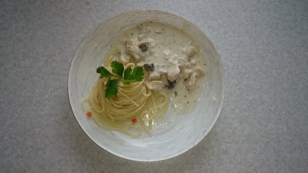 На гарнир я приготовила спагетти, получилось очень вкусно и сытно