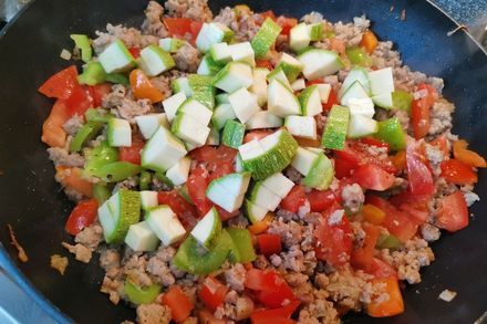 Спагетти – это один из видов итальянской пасты. Длинные тонкие "спицы" из пшеничной муки твёрдых сортов знакомы почти всем. Готовить их быстро и просто, спагетти очень универсальны – сочетаются с десятками соусов и продуктов. Спагетти с фаршем - рецепт универсальный и очень популярный. Отличный вариант разнообразить любимые спагетти - это соединить их с мясным фаршем, ароматным болгарским перцем, сочными кабачками и помидорами. Все компоненты отлично сочетаются между собой. А прованские травы придают заключительный штрих готовому блюду. К преимуществам пасты можно отнести быстроту и совершенно несложный процесс приготовления. Кроме того, паста полезна как калорийное блюдо, не ведущее к ожирению. Гламурные итальянские барышни запросто съедают на обед тарелку с горкой пасты. И это кроме всех остальных закусок.