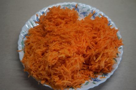 Морковь тонко нарежьте. Редиску тонко нарежьте овощечисткой.