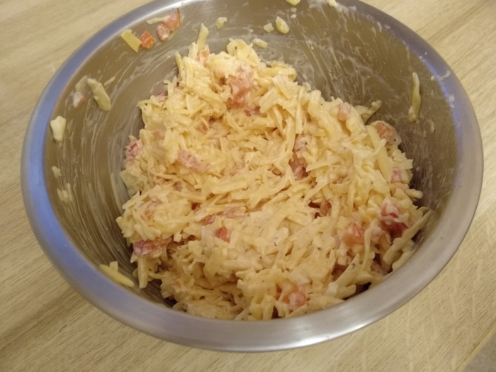 И сверху снова сыр. Смазываем частью чесночного масла.