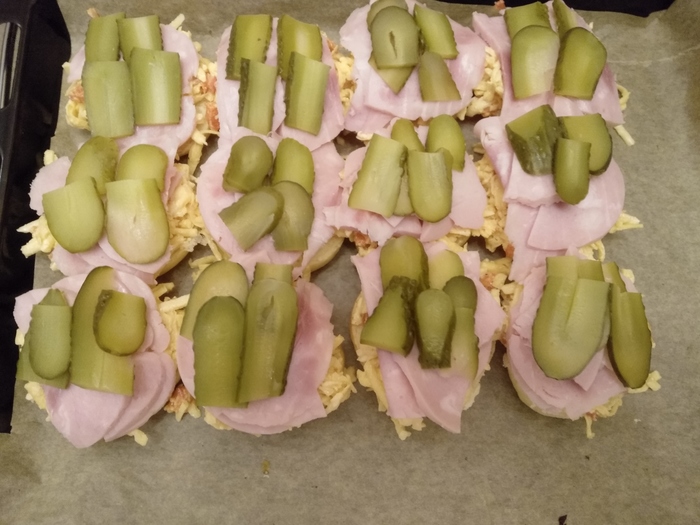 Накрываем верхними булочками и смазываем оставшимся чесночным маслом. По желанию посыпаем тертым пармезаном.