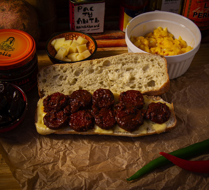 Этой осенью я должен был полететь в отпуск в Грузию. Но в виду известных всем причин полет мой накрылся медным тазом, так же как и моя лояльность к нынешней власти. В итоге свой отпуск я с семьей провел в Турции, если хотите конкретней - в Бодруме. Отличное место, скажу я вам, из плюсов - там практически нет наших соотечественников (да, это плюс, не спорьте), из минусов - дороговато и курорт рассчитан на европейских стариканов. И хоть по причине затопления соседей мне пришлось вернуться в Москву с половины отпуска, я все равно отлично отдохнул, поел интересной турецкой кухни, и ,естественно, своего любимого турецкого суджука. Как говаривал один восточный мудрец, этот суджук, он не тот суджук, который ты с пивом жевать привык. Турецкий суджук, это, по сути, ферментированная колбаса с пряностями. В сыром виде гадость редкостная (но мой знакомый турок сказал, что её сырьем никто и не ест), в жареном же виде - балдеж, лично мне чем-то напоминает очень пряный бекон. В основном суджук принимается внутрь по утрам с яичницей, именно таким завтраком я вдохновился и решил приготовить утренний сэндвич в турецком стиле.
