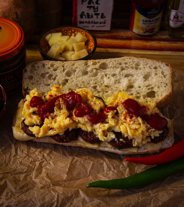 У нас получился отличный сэндвич для утра выходного дня. Почему выходного? Ну во-первых кто так в будни будет утром морочиться? А во-вторых, суджук хоть и вкусный, но запах у него достаточно специфичный и может с ног снести неподготовленного человека. А в остальном получается невероятно колоритный, пряный и сытный сэндвич, для холодного зимнего утра - самое то, будто съел немного отпуска :)