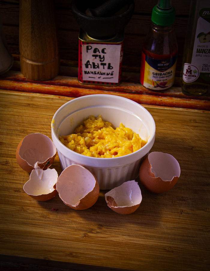 2) Теперь делаем болтунью, она же scrabbled eggs. Я недавно в этих ваших интернетах увидел как Гордон Рамзи готовит болтунью, и хоть мне этот морщинистый засранец не нравится, я решил повторить его рецепт. Получилось вкусно, как по мне, вкуснее обычной болтуньи на сковороде, единственный минус - посуду потом хрен отмоешь. Делает Рамзи так, берет сотейник или маленькую кастрюльку, запиливает туда яйца и сливочное масло и дальше на маааааленьком огне начинает прогревать яичную смесь постоянно перемешивая по часовой стрелке, ну и так до готовности, а готовность каждый определяет себе уже сам, мне нравится пожиже, кому-то полностью готовая, делайте по вкусу короче. Могу вам немного испортить аппетит, такая болтунья очень мне напомнила бараньи мозги, которые я тоже попробовал в Турции :)
