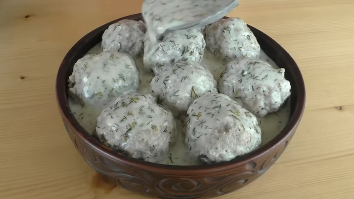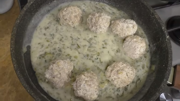 Достаём фрикадельки и аккуратно выкладываем в горячий томатный соус. Всё хорошенько перемешиваем и тушим на небольшом огне 10 минут.