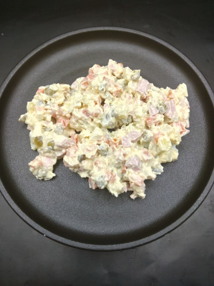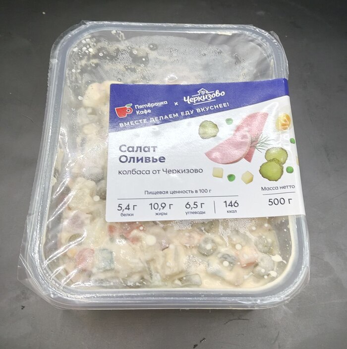 Маленьких пачек не было, поэтому беру полкило, хорошо что дома у меня есть оливьелюб и ничего не пропадёт, кстати, ни один из экземпляров оливье не был выброшен, чего не скажешь о сельди под шубой. Здесь огурцы другие, не сказать что хуже, просто другие, попадается недоваренная картошка, горошек твёрдый, в общем, в этот салат пошли не самые хорошие продукты и подпортили его. Не рекомендую.