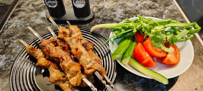 Это долго. Нет не так... ЭТО ДОЛГО, Куски мяса маленькие, но жарить их долго. Это не на мангале. Выход Не большой. 5 маленьких шампуров.