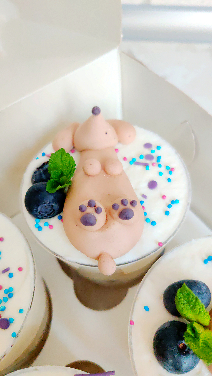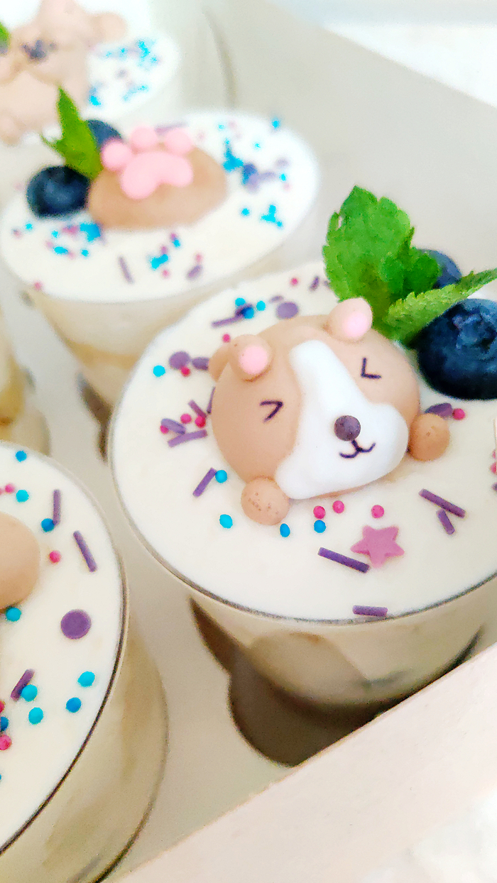 Я снова с корги-попами(: и ещё одним вариантом декора, в этот раз случился запрос на такую очаровательную коробочку с трайфлами. То бишь порционными тортиками в стаканчиках.
