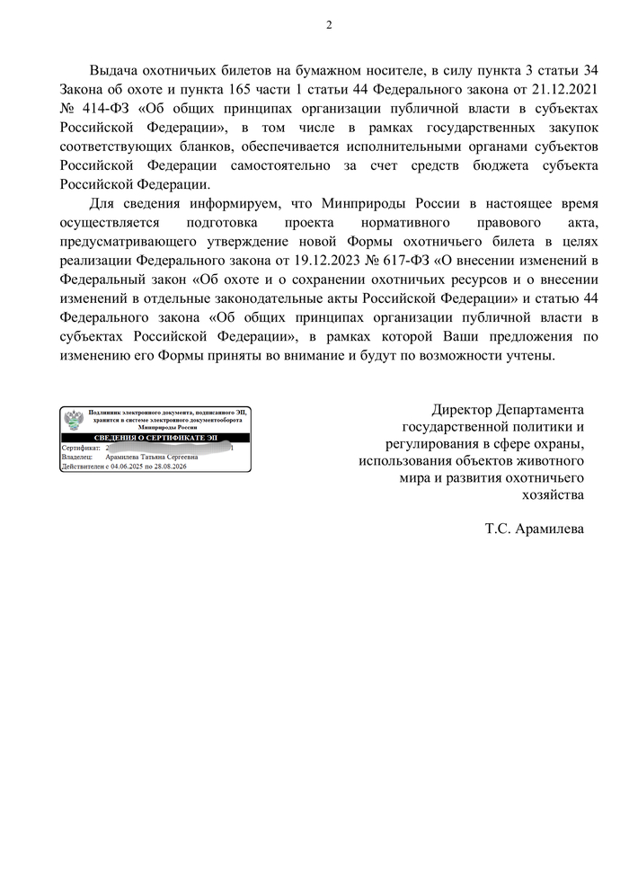 В общем подумал и написал в Министерство Природных Ресурсов и Экологии РФ, на тему того, кто у них такой "гениальный" - такие форматы для охот билета разработал, где на бумажном куаркод, если основной электронный и какого лешего мне теперь покупать ещё один телефон с повышенной защитой для электронного и почему охотбилет не сделать таким же, как например разрешение на оружие и выдавать его через Росгвардию, потому как опять же я его им туда должен отнести и показать?