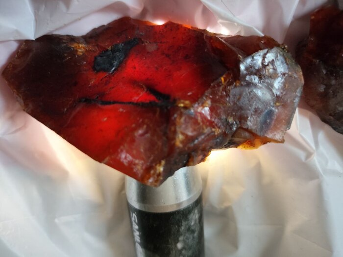 Возможно этот минерал и есть янтарь, прошедший трансмутацию под действием внешних условий. Только если учесть наличие в этом минерале цельных кусочков древесины не разрушенных от времени то эта трансмутация прошла в холодном режиме, может быть действие излучения урановых. Хотя в наших краях месторождений урановых нет, хотя свинец добывают, правда далеко от места находки этого минерала